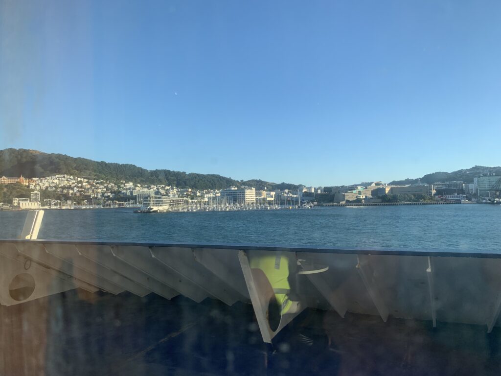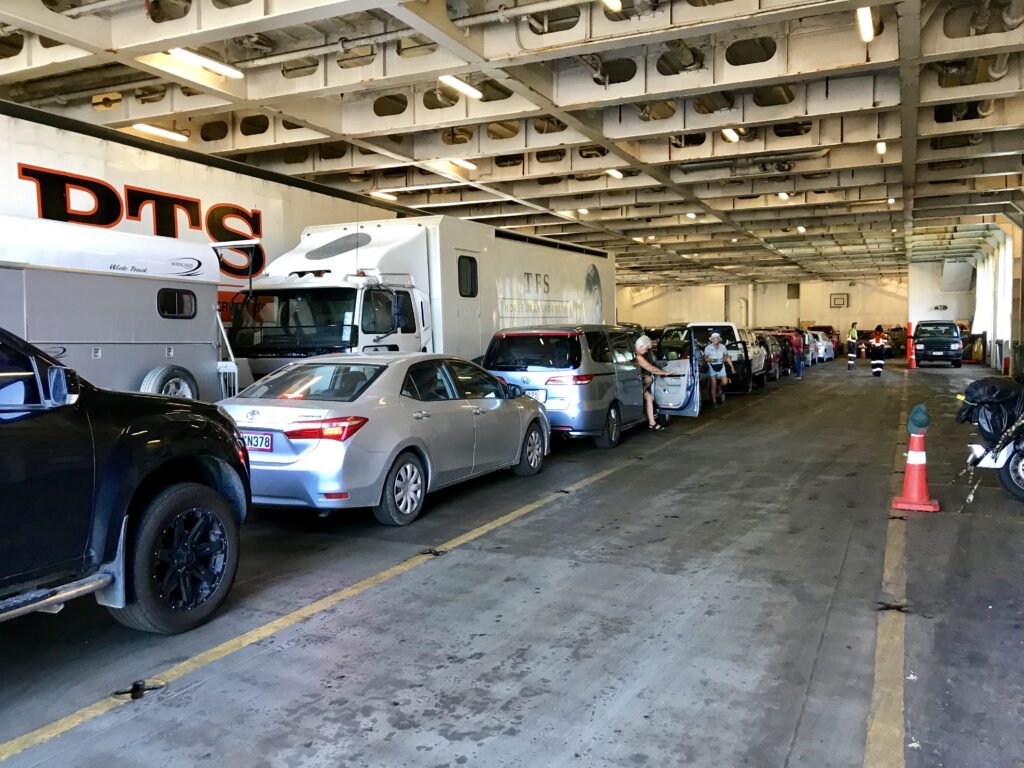 We had a lazy start today, being in no rush. We had our usual breakfast then packed up to leave. Fortunately we could say our goodbyes directly to our charming, hospitable hosts. We headed out for Picton where we were scheduled to take the Bluebridge ferry across Cook Strait to the north island. We’ve spent the last two weeks traveling the south island, racking up 2,750 km. What seems like a relatively small country on the map isn’t really so in a small car driving every day. But it has been a joy thus far!